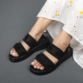 صندل زنانه بافتی مدل حصیری نگینی مشکی