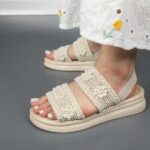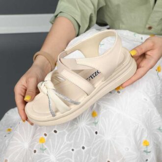 صندل زنانه چرم پشت سگک قهوه ای سوخته