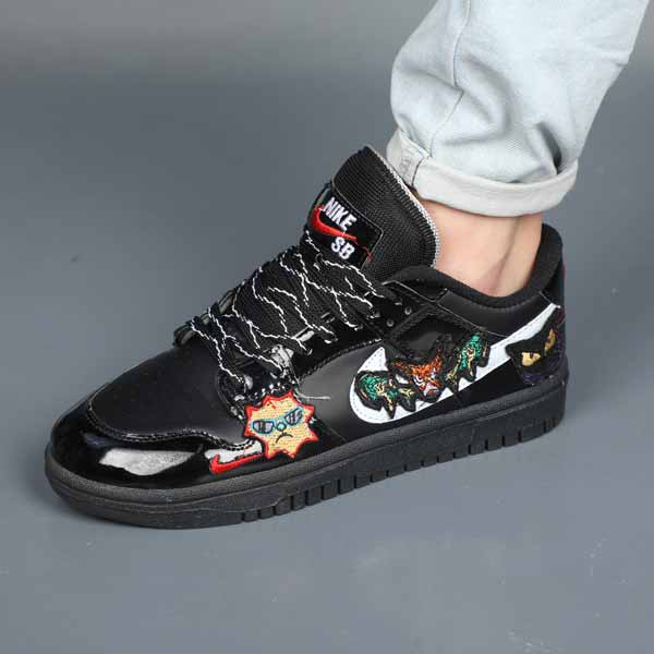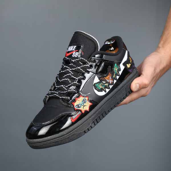 خانه کتونی مردانه کتونی نایک کاستوم گلدوزی مشکی ورنی